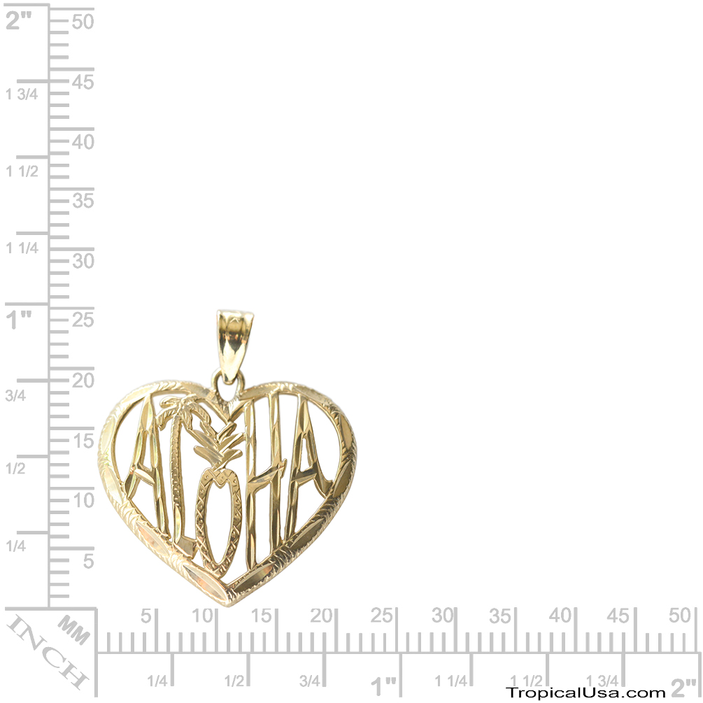 > 14K Gold Aloha Heart with Diamond Cuts Pendant Hawaii