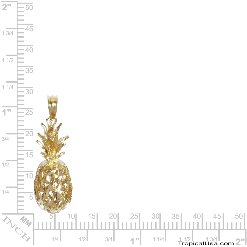 14K Gold Diamond Cut Pineapple Pendant XL Hawaii