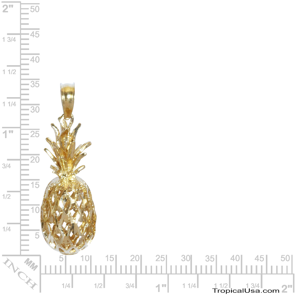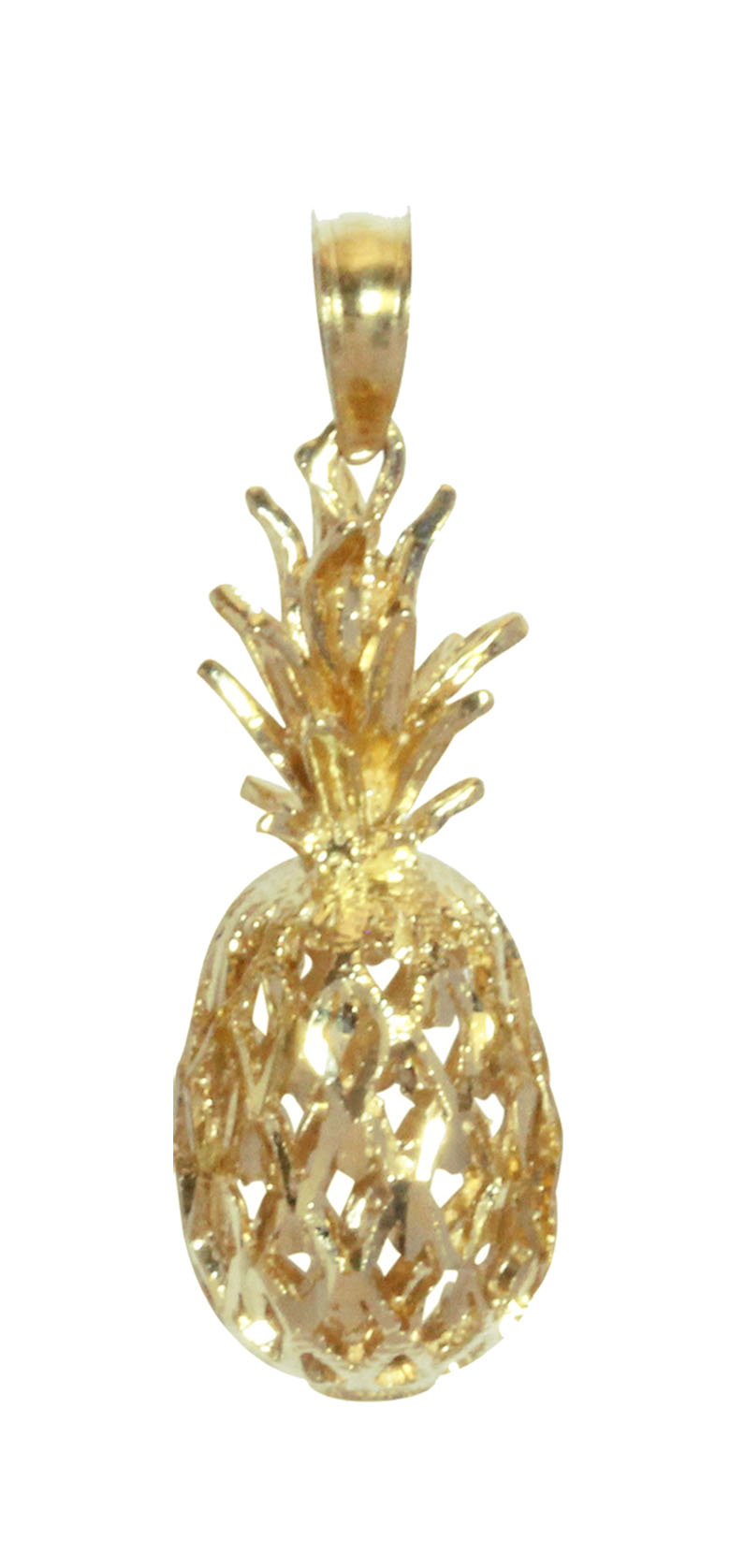 14K Gold Diamond Cut Pineapple Pendant 3L Hawaii