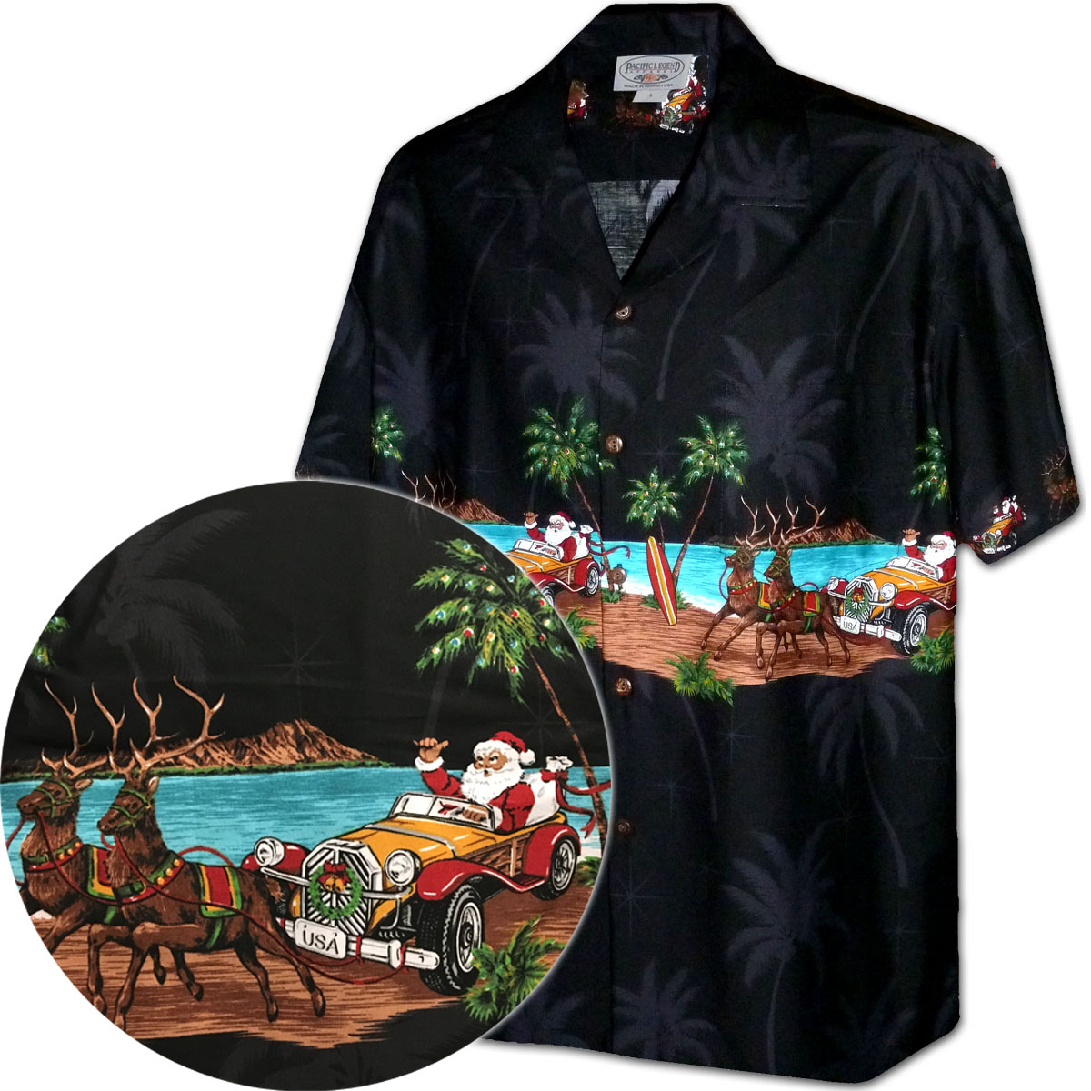 Cruisin Hawaiian Santa Men's Christmas Shirt Black