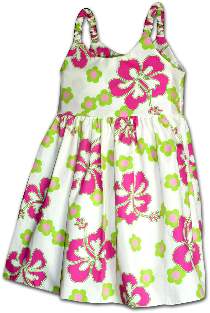 > Cute Hawaiian Toddler Dress Cool Hibiscus White
