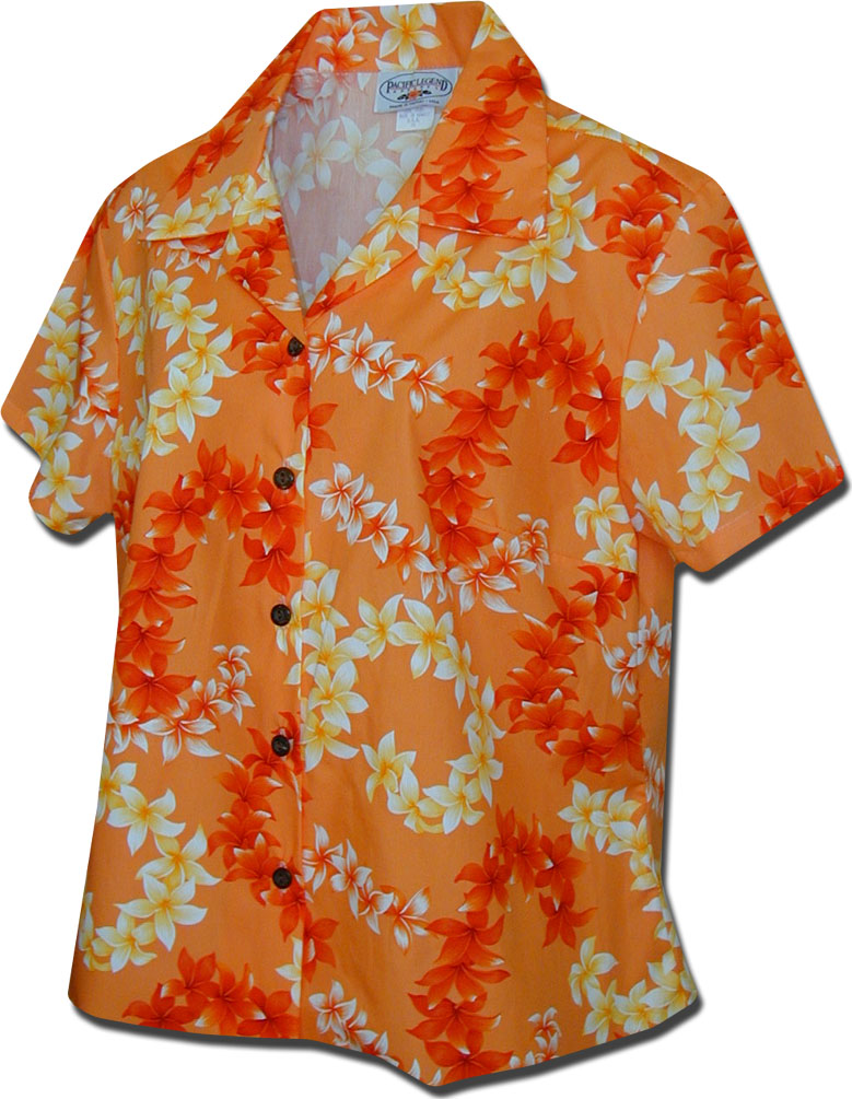 > Endless Leis Ladies Hawaiian Shirts Orange