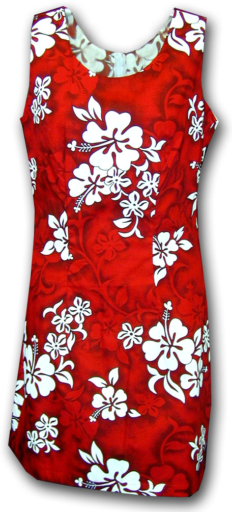 > Hawaiian Attire (Red) White Hibiscus Dress