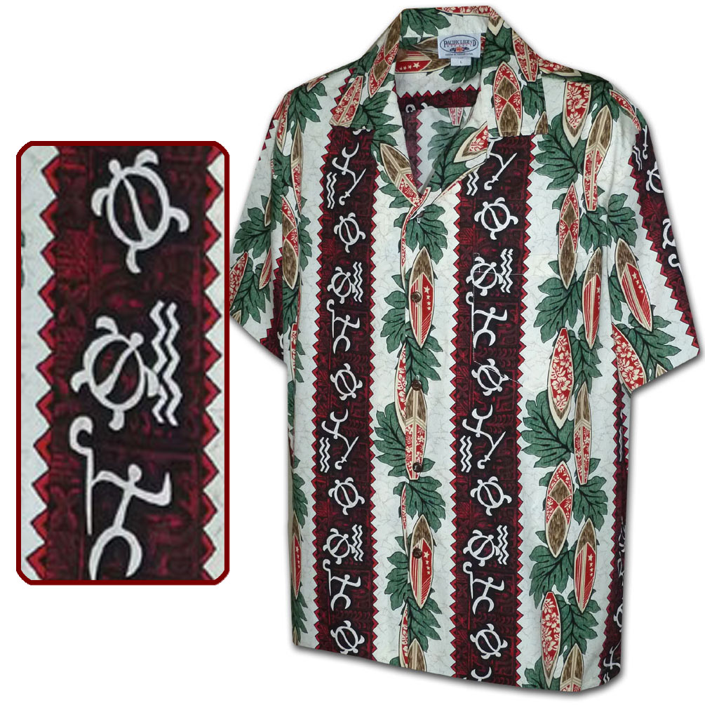 Hawaiian prints oftentimes come in the form of floral and plant patterns, surfing, boats, tropical fish and birds, coconut trees, orchids, indigenous animals, and other designs that suggest tropical and festive moods. They are characterized by vibrant and colors that add excitement and fun no matter how and where you wear the shirts.