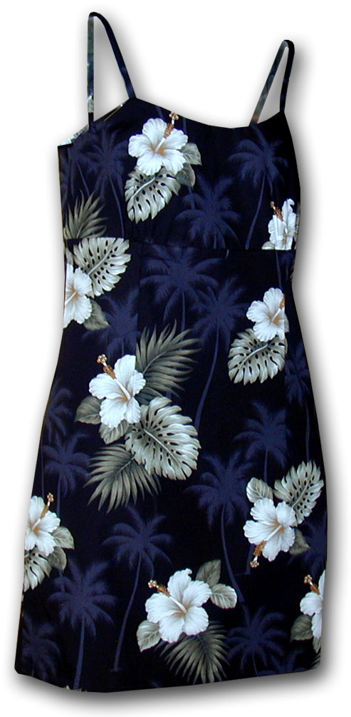 > Hawaiian Dress Hibiscus Island Spaghetti Black
