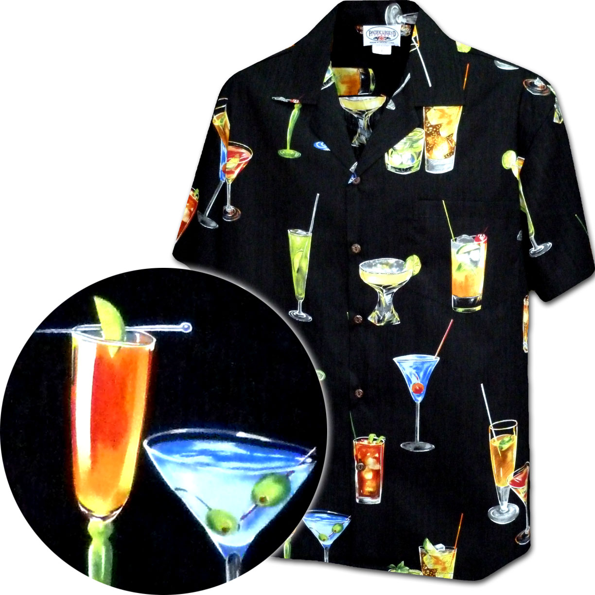 Hawaiian Shirt with Tropical Drinks 3948Black