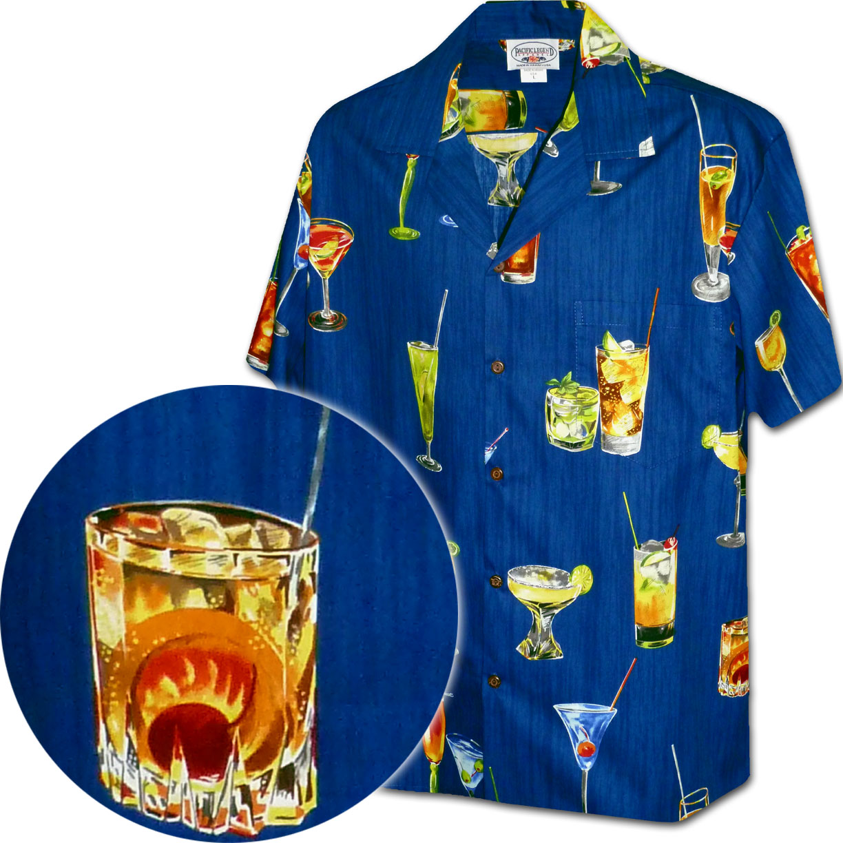 Hawaiian Shirt with Tropical Drinks 3948Navy