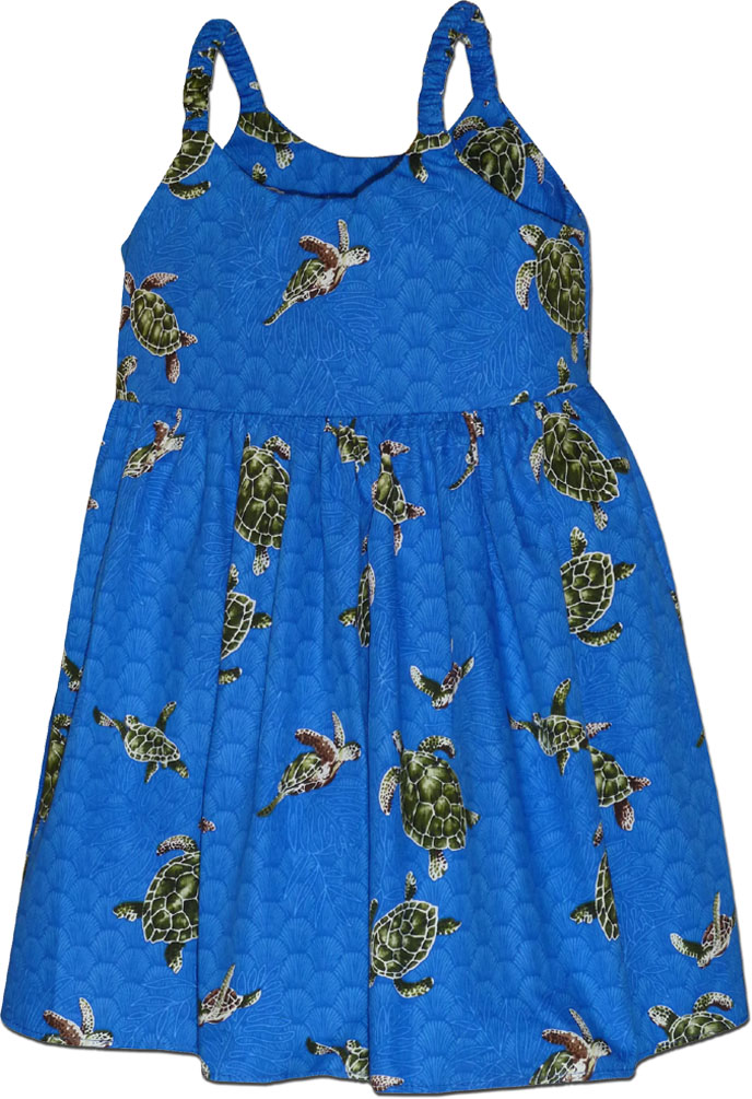 > Hawaiian Toddler Dress Turtles in Blue
