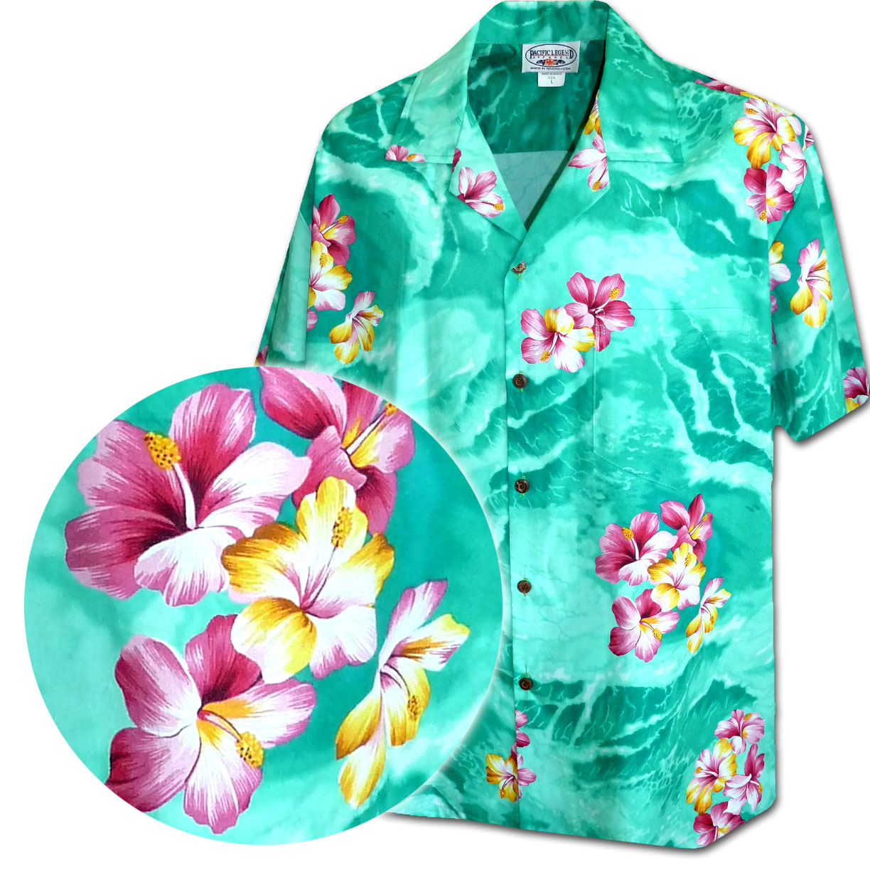 > Hibiscus Wave Men's Tropical Shirt 3902Green