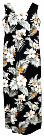 Hibiscus Garden Long Black Hawaii Tank Dress (XS-XL)