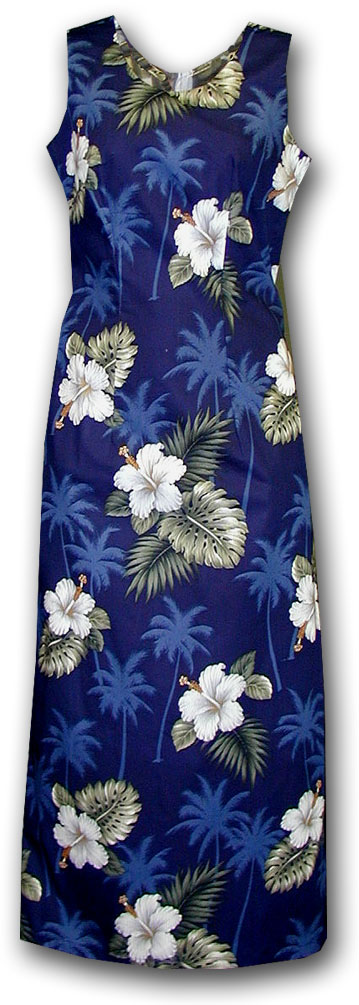 Hawaiian Dresses Hibiscus Island Navy Long Tank (XS-2XL)