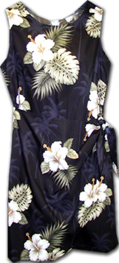 > Cotton Hawaiian Dresses Black Sarong Hibiscus Islands