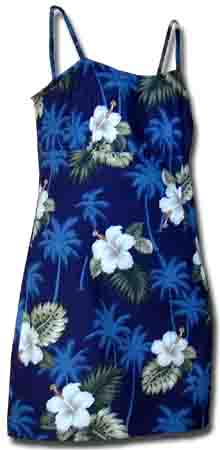 > Hawaiian Dress Hibiscus Island Spaghetti Navy (S-XL)