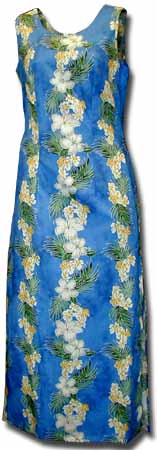 Hibiscus Panel Long Tank Dress Blue (XS)