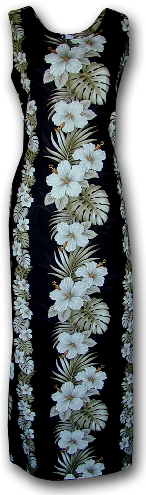 Hibiscus Panels Black Long Tank Hawaiian Dresses (S)