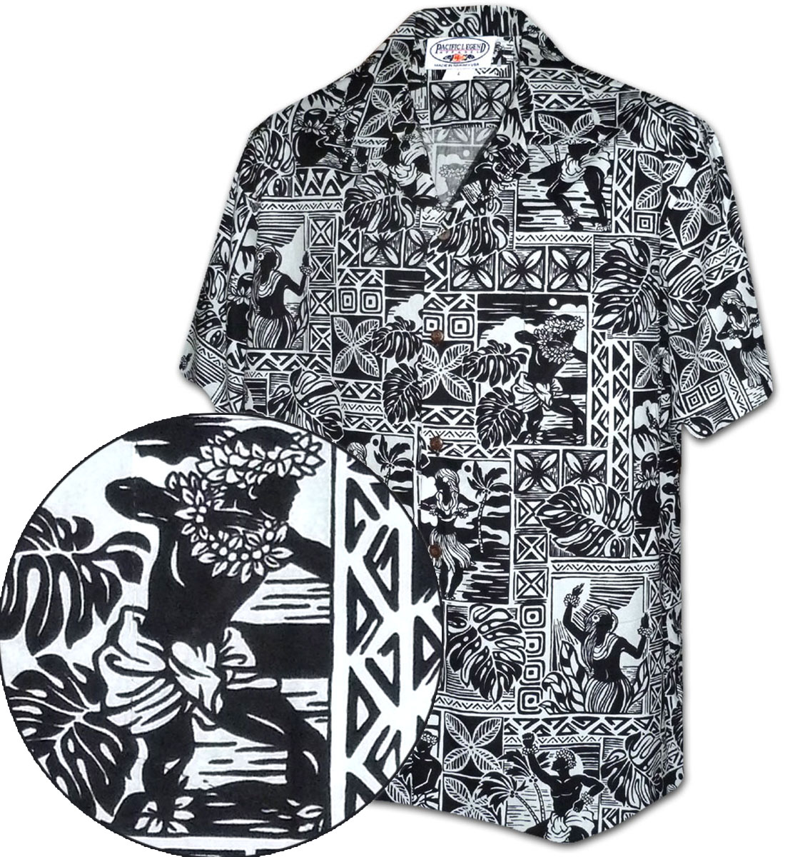 > Hula Blocks Pacific Legend Men's Aloha Shirts Black