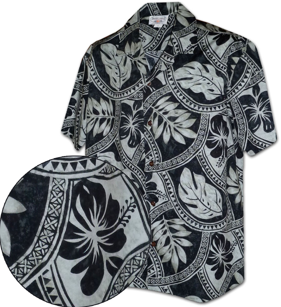 > Island Tribal Cotton Men's Aloha Shirts Charcoal