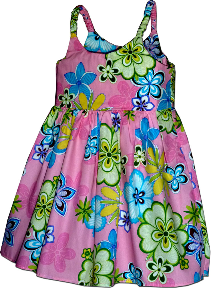 > Kids Hawaiian Dress Pink Cute Hibiscus