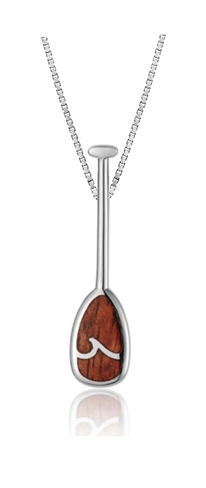 Koa Wood Pendant Sterling Silver Paddle Canoe Wave Design Hawaii