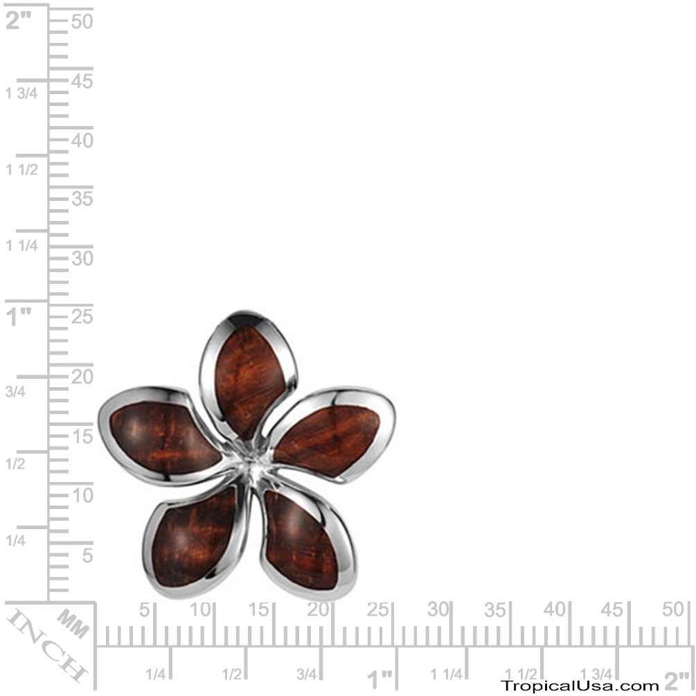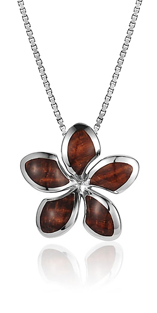 Koa Wood Pendant Sterling Silver Plumeria Tropical Flower Hawaii