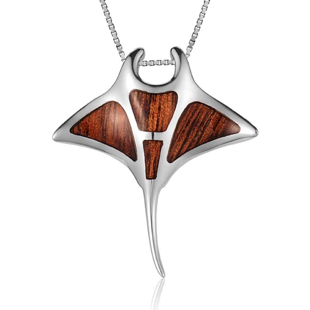 Koa Wood Polished Sterling Silver Manta Ray Pendant Hawaii