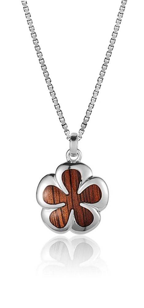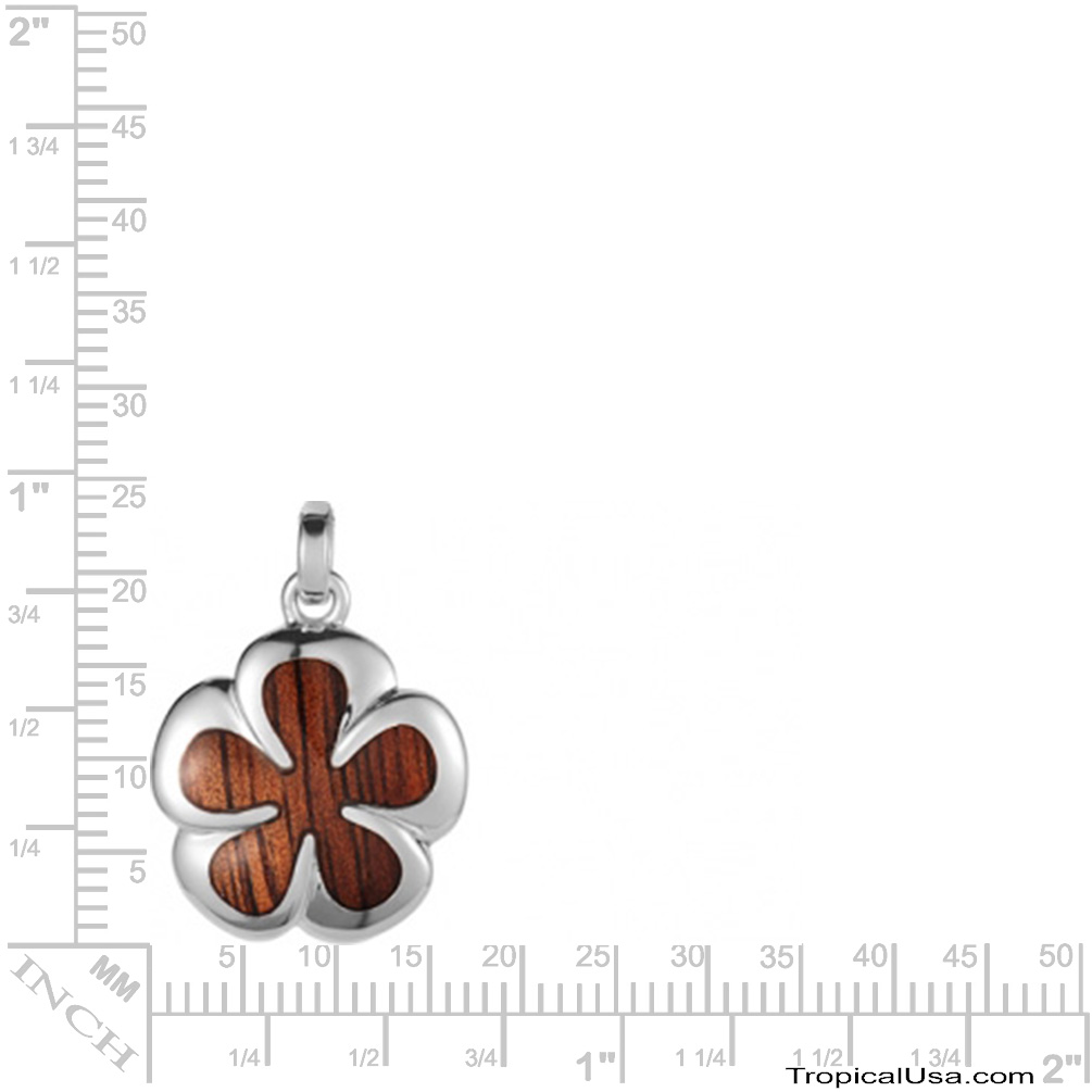 Koa Wood Sterling Silver Plumeria Groovy Flower Pendant Hawaii