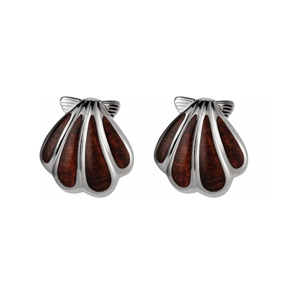 > Koa Wood Sterling Silver Sunrise Seashell Earrings