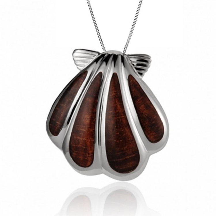 Koa Wood Sterling Silver Sunrise Seashell Pendant Hawaii