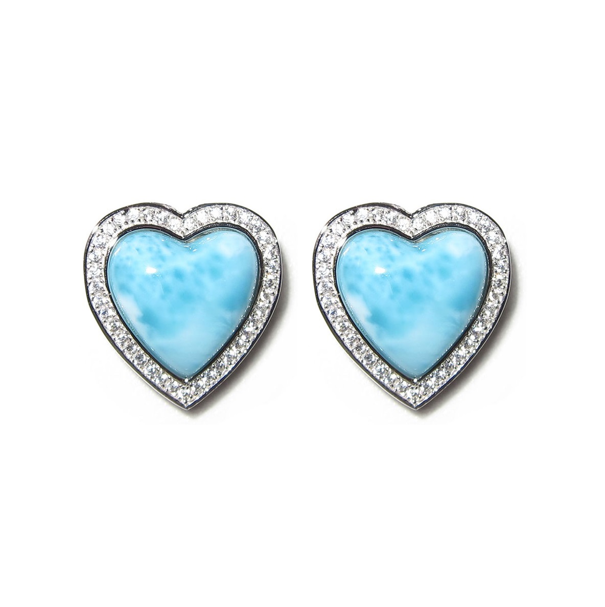 Larimar Blue Sterling Silver Heart Ocean Soul Earrings Hawaii