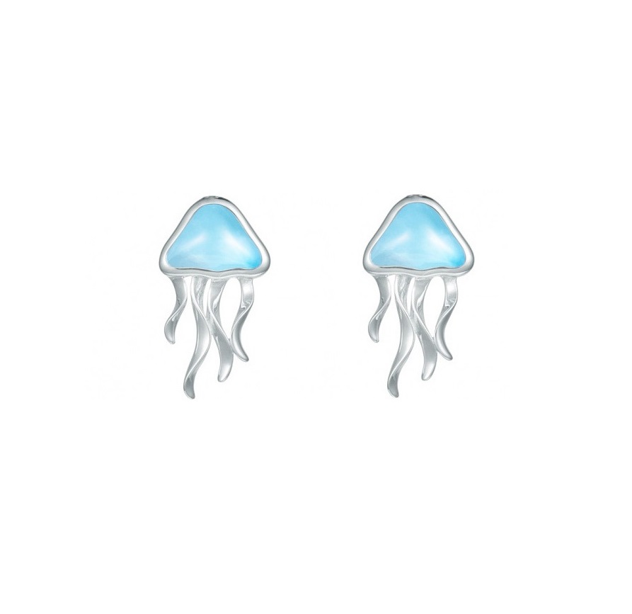 > Larimar Blue Sterling Silver Jellyfish Earrings