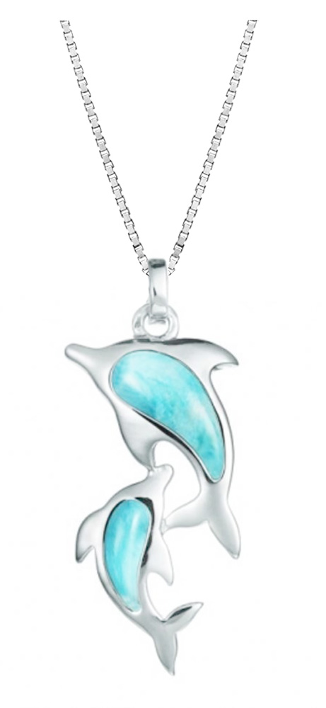 Larimar Sterling Silver Dolphin Friends Leaping Pendant Hawaii