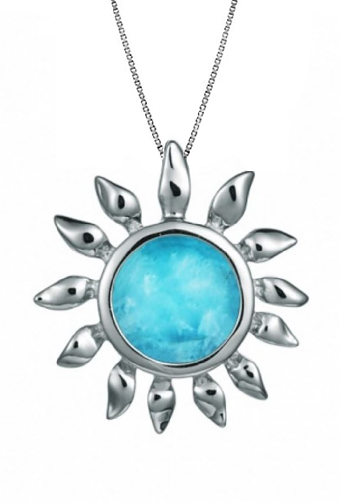 Larimar Sterling Silver Sunflower Tropical Paradise Pendant Hawaii