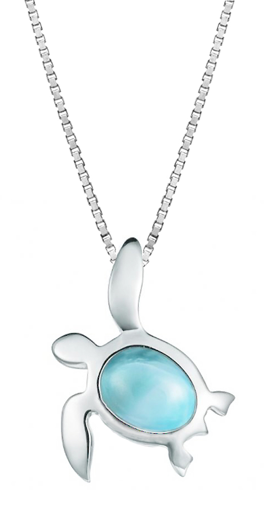 Larimar Sterling Silver Turtle Hello Aloha Ocean Pendant Hawaii