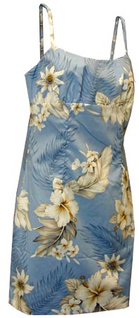 > Luau Adjustable Spaghetti Hawaiian Dress Blue (S-XL)