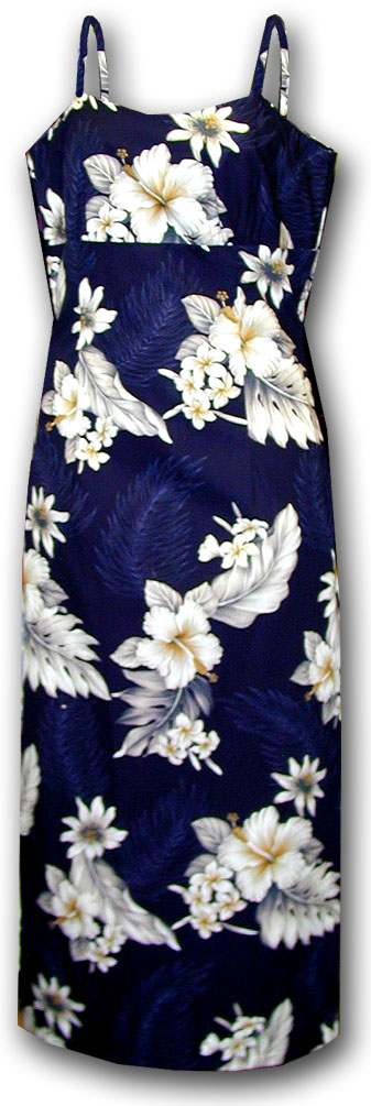 > Tropical Clothing Navy Luau Long Spaghetti Dress (XS-XL)**