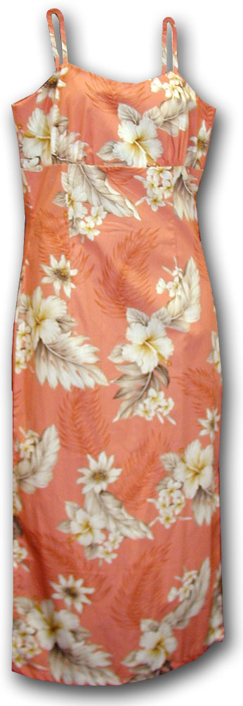 Tropical Clothing Peach Luau Long Spaghetti Dress