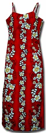 > Royal Hibiscus Panel Spaghetti Long Hawaii Dress Red (XS,S)