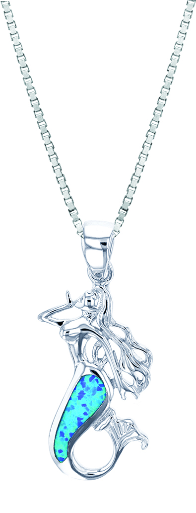 Mermaid Opal Blue Scale Tail Sterling Silver Pendant Hawaii