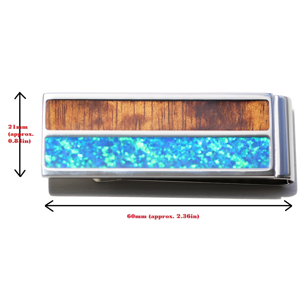 Money Clip Koa Wood Stainless Steel Abalone or Synth Opal Hawaii