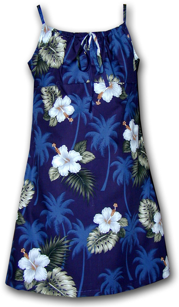 > Hibiscus Island Girls Navy Aloha Spaghetti Dress