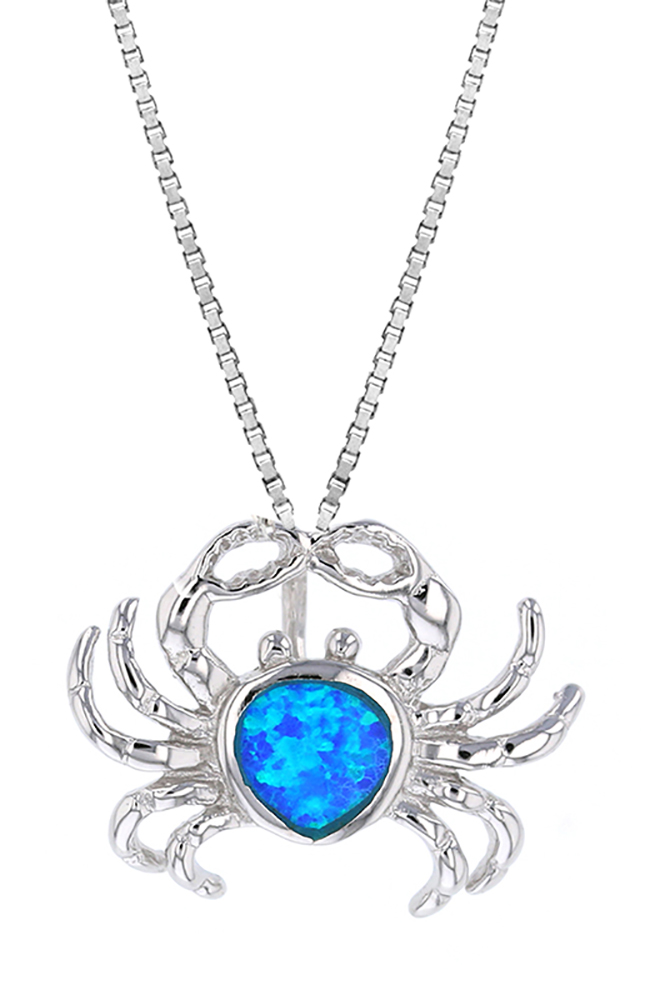 Opal Blue Sterling Silver Crab Classic Pendant Hawaii