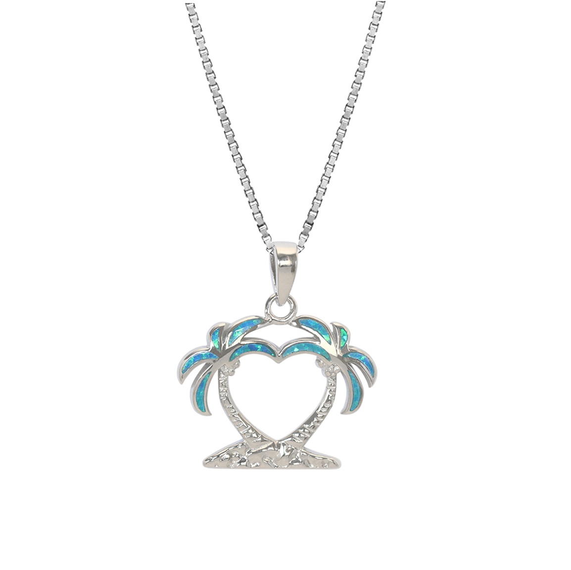Opal Blue Sterling Silver Heart Palm Pendant Hawaii