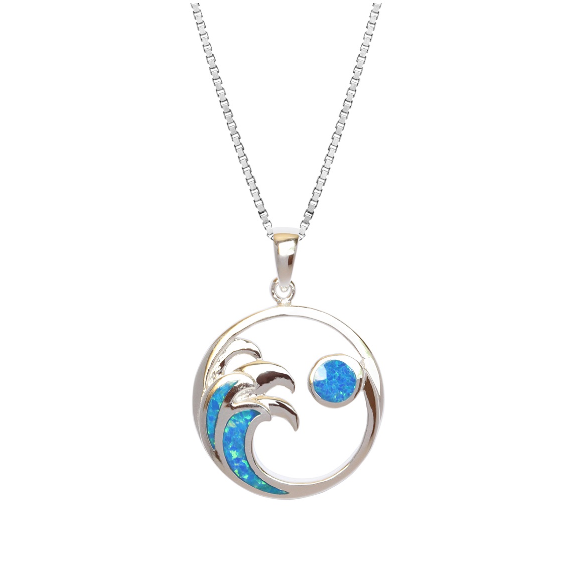 Opal Blue Sterling Silver Moon Full Tide Pendant Hawaii