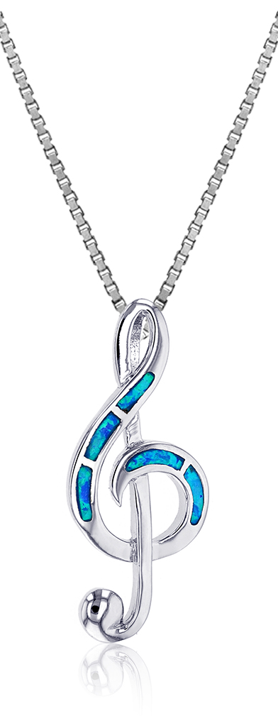Opal Blue Sterling Silver Music Clef Pendant Hawaii