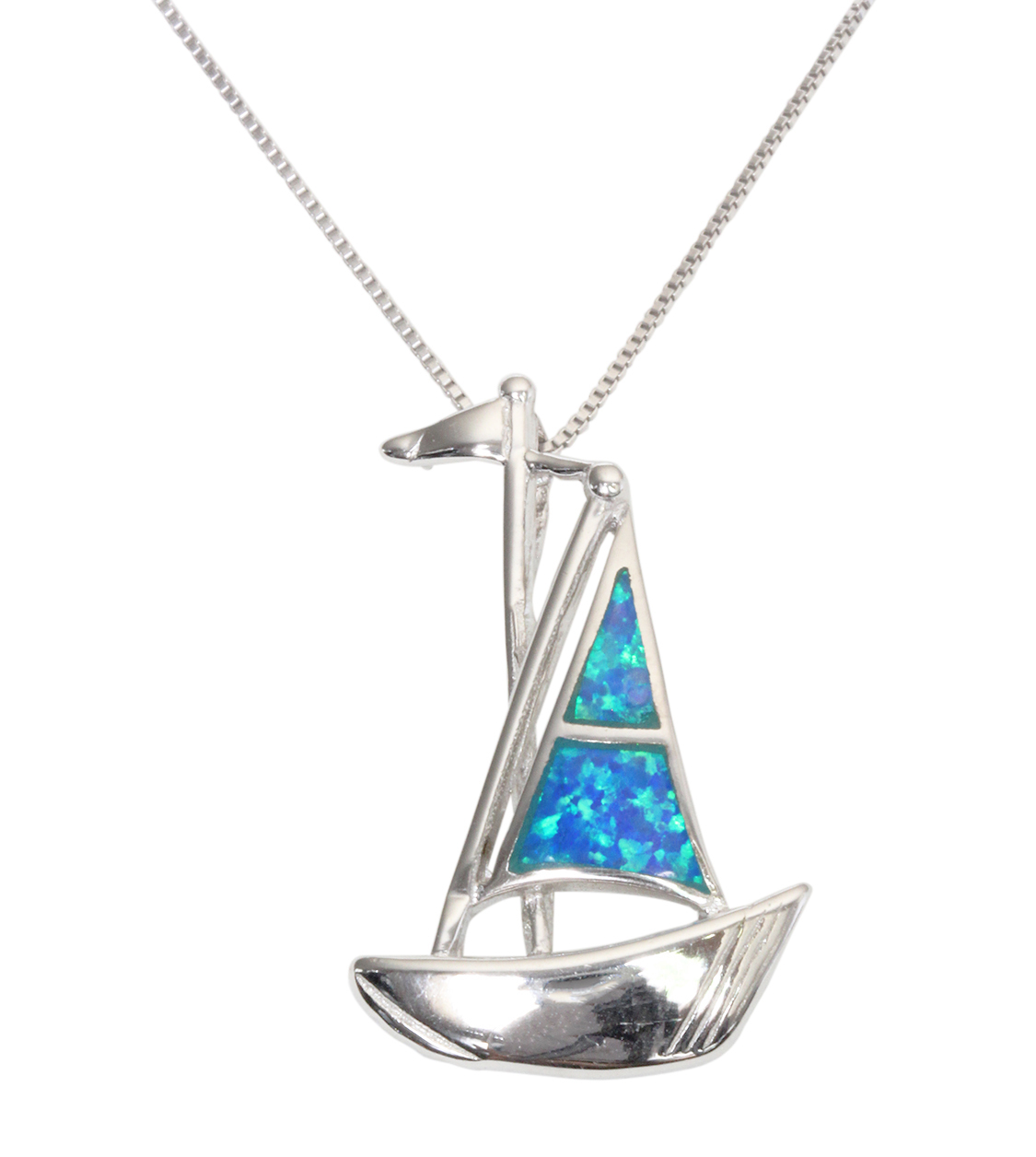 Opal Blue Sterling Silver Sailboat Flag Pendant Hawaii