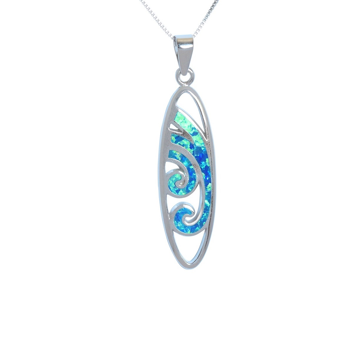 Opal Blue Sterling Silver Surfboard Wave Pendant