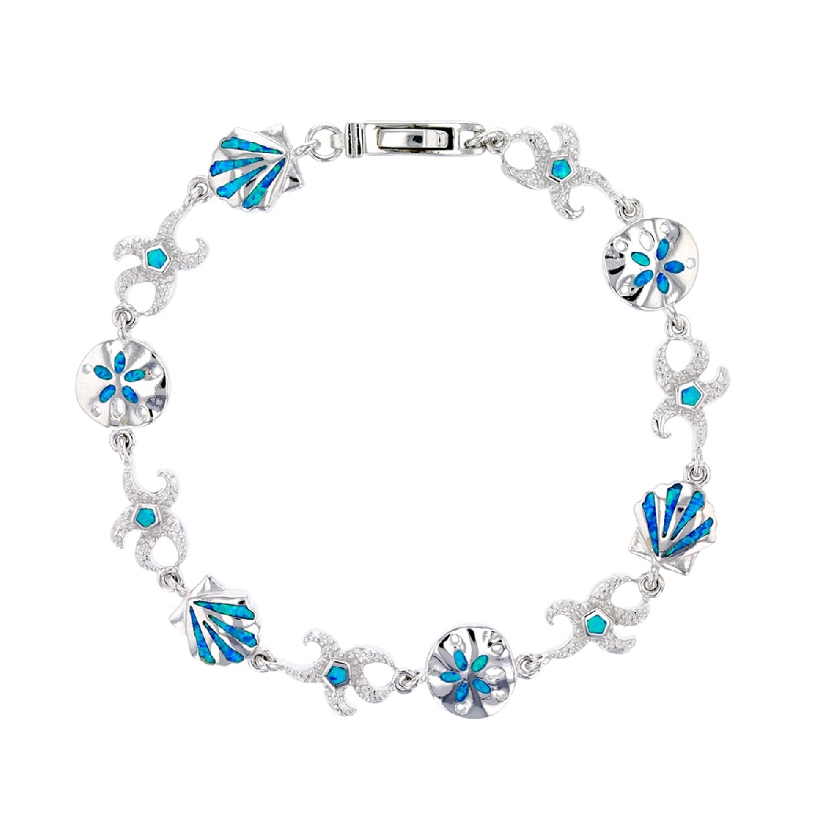 Opal Sterling Silver Bracelet 7.5 inch Sand Dollar Starfish Seashell Hawaii