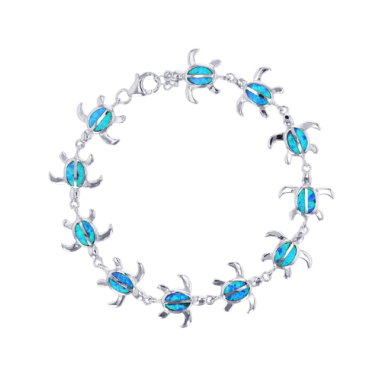 Opal Sterling Silver Bracelet 7.5 inch Tribal Turtle Hawaii