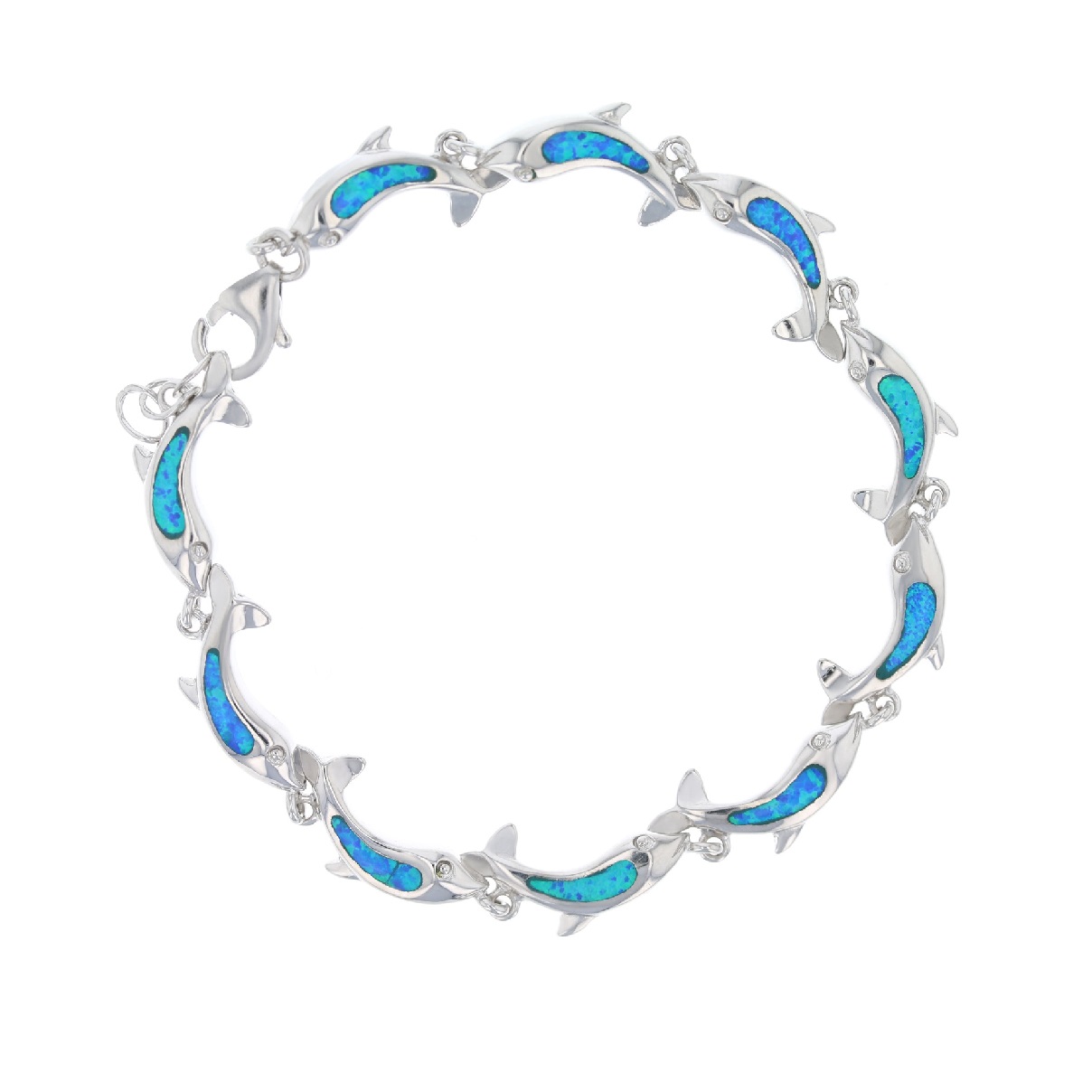 Opal Sterling Silver Bracelet Dolphin Circle 7.5 inch Hawaii