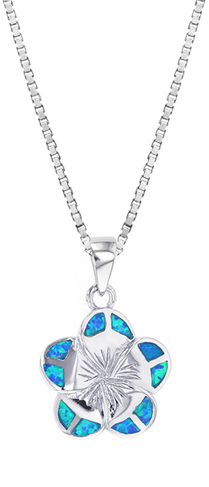 Opal Sterling Silver Flower Blue Petals Pendant Hawaii